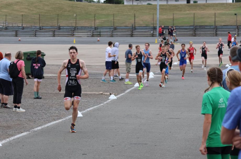 Into T2, I got a little boxed in and was trying to push my way up as far as possible, but came in around 5th, only a second or so off the leader, however I was quick in T2 and exited in the lead and ran hard out of T2. I created a gap quickly which stuck. I kept on pushing and in the end it paid off. With the gap not being closed and running strong over the 2 lap 2km course, to come in 1st, in the automatic selection spot for the Youth European Triathlon Championship in Austria, this September.